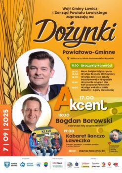 Serdecznie zapraszamy na Dożynki Powiatowo – Gminne, które odbędą się w niedzielę, 7 września na boisku sportowym przy Szkole Podstawowej w Wygodzie.